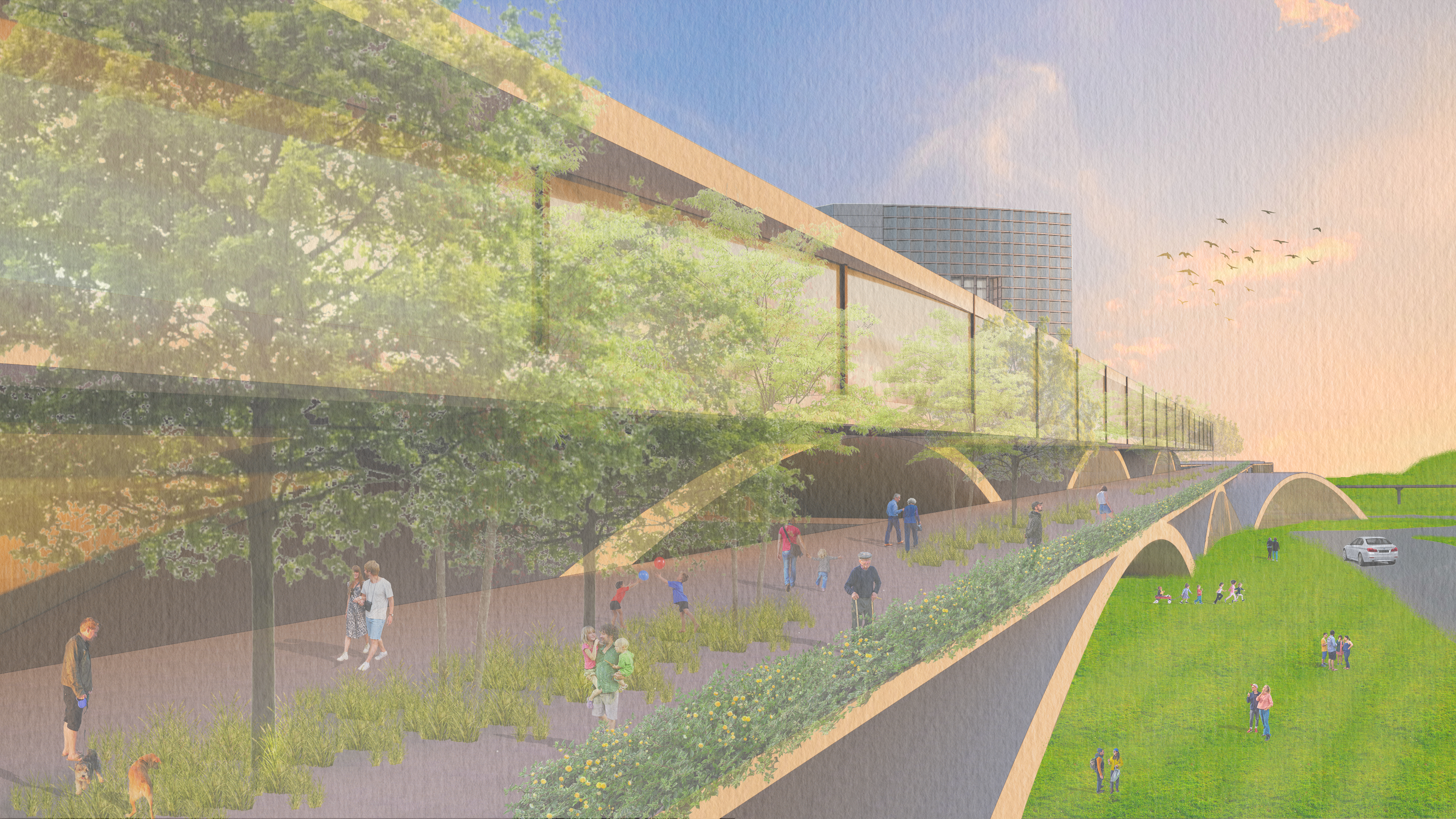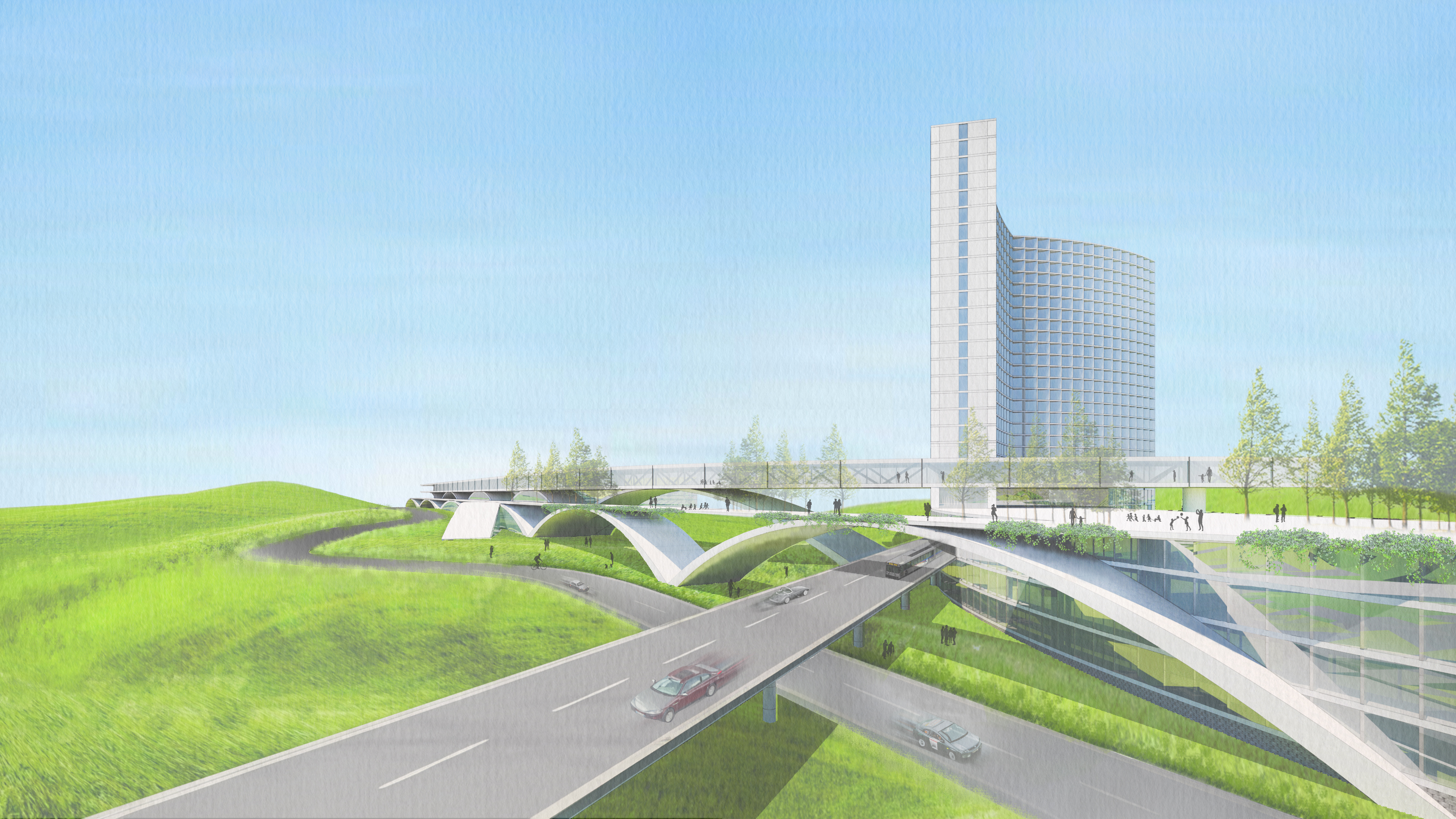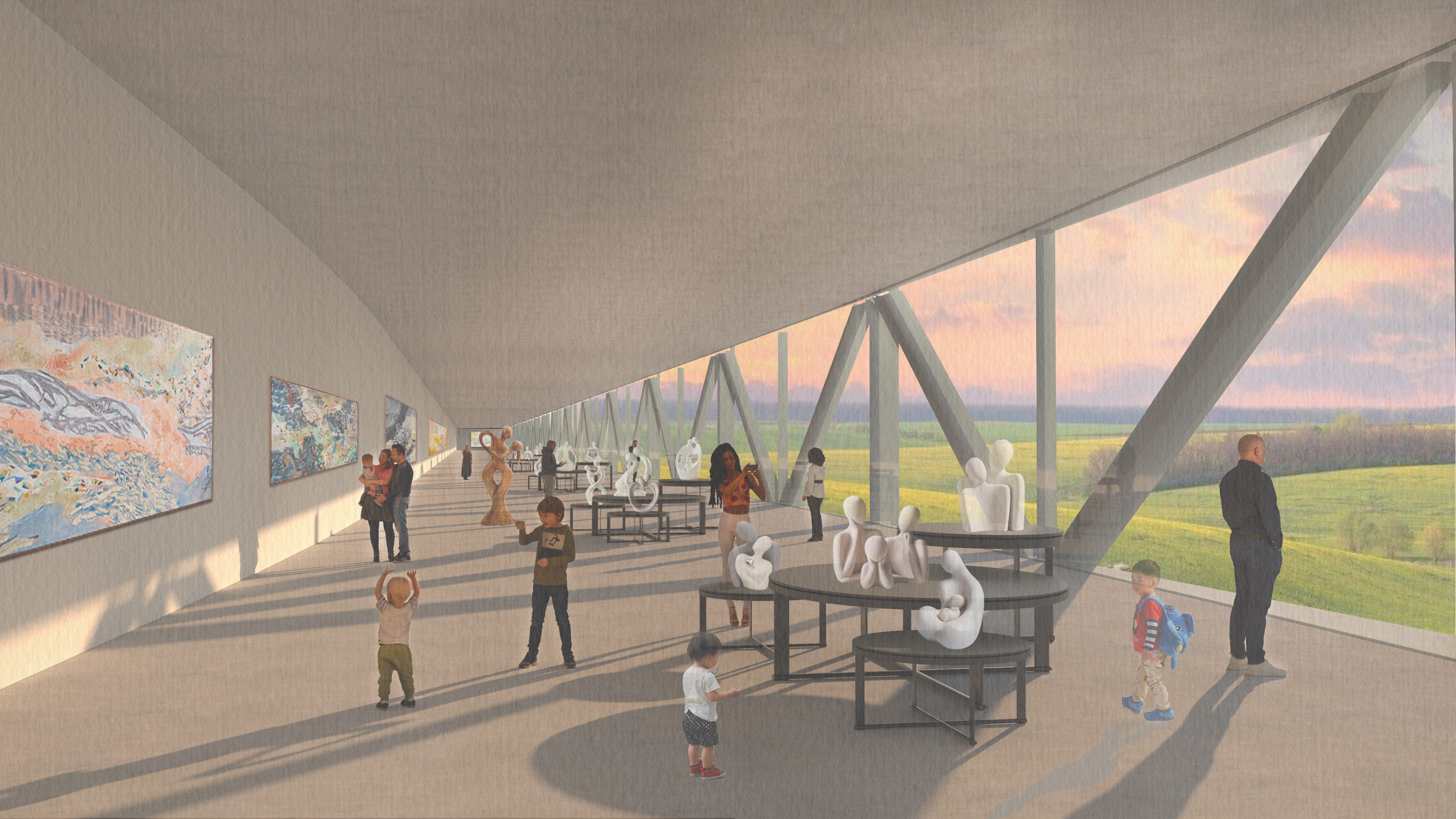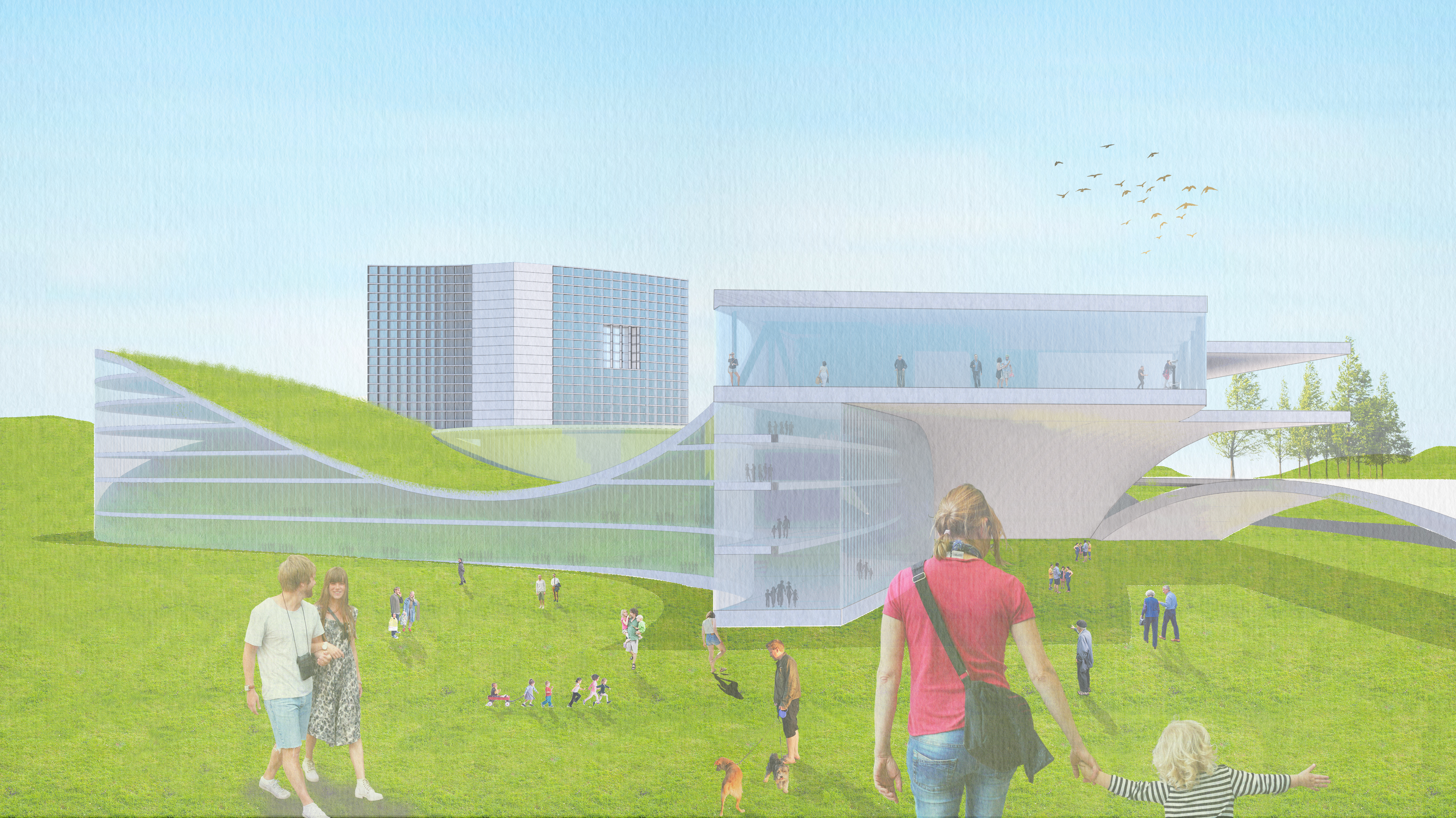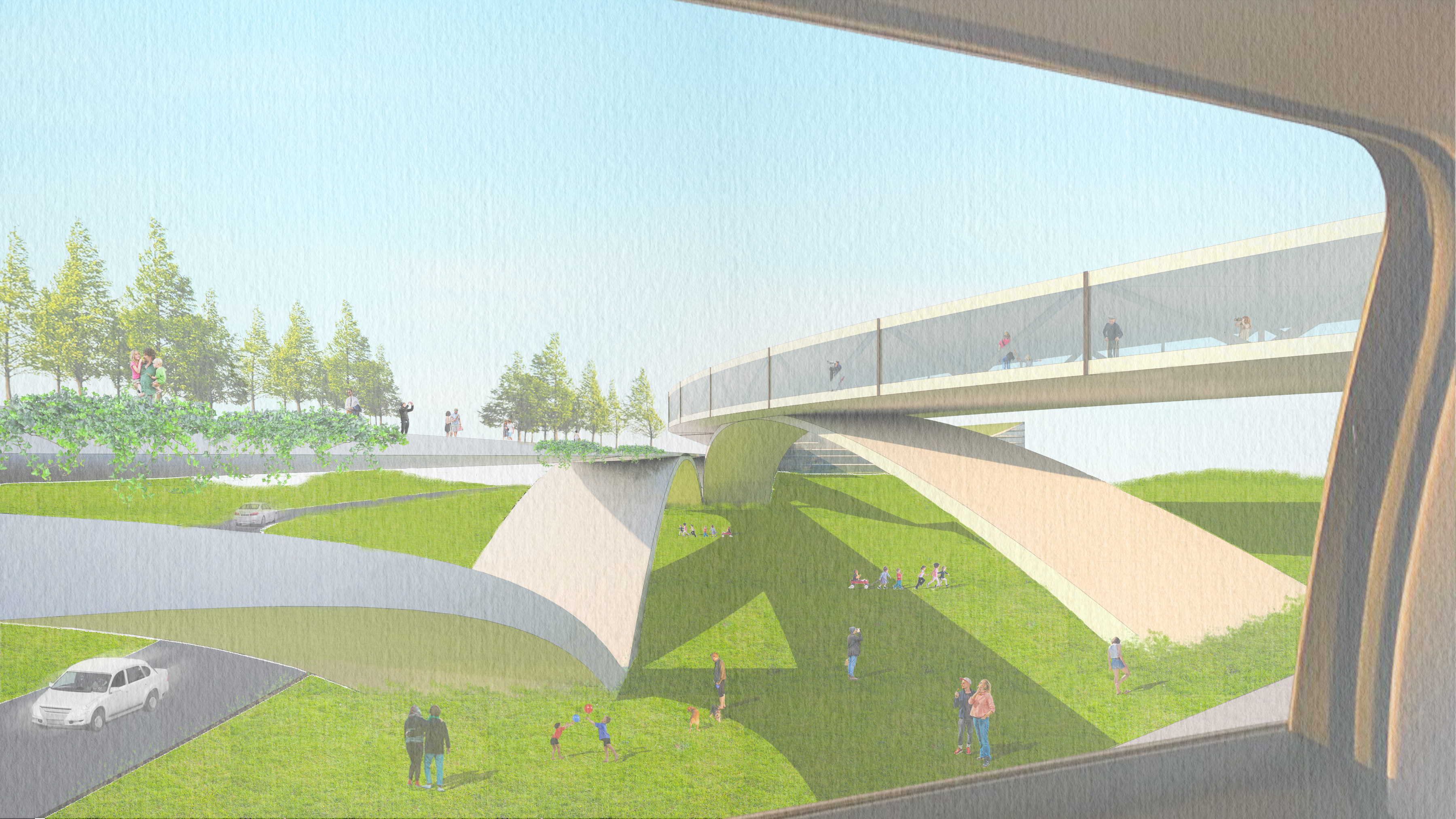園區轉運站與道路的相連,舒緩當地壅塞的交通狀況,停車與購物空間將相同屬性空間整合,保留最大的綠地面積作為戶外演藝廣場,連續拱形的建築量體呼應著地形的起伏,下方空間提供木雕文化相關機能使用,上方舖設空中花園大街,遊客在行走的同時欣賞當地景色,眺望整個木雕文化的搖籃。國際會議廳結合藝術家工作坊,以戶外平台讓藝術家從工作坊走出,與來自世界各地的參與研討會的研究者彼此觀摩、學習且代表著對木雕這項藝術的尊重。創新育成商品街以帶狀量體與工作坊及飯店連接,將具有一定水平的木雕展示讓更多人看見這門藝,在這園區中形成系統式的傳承。