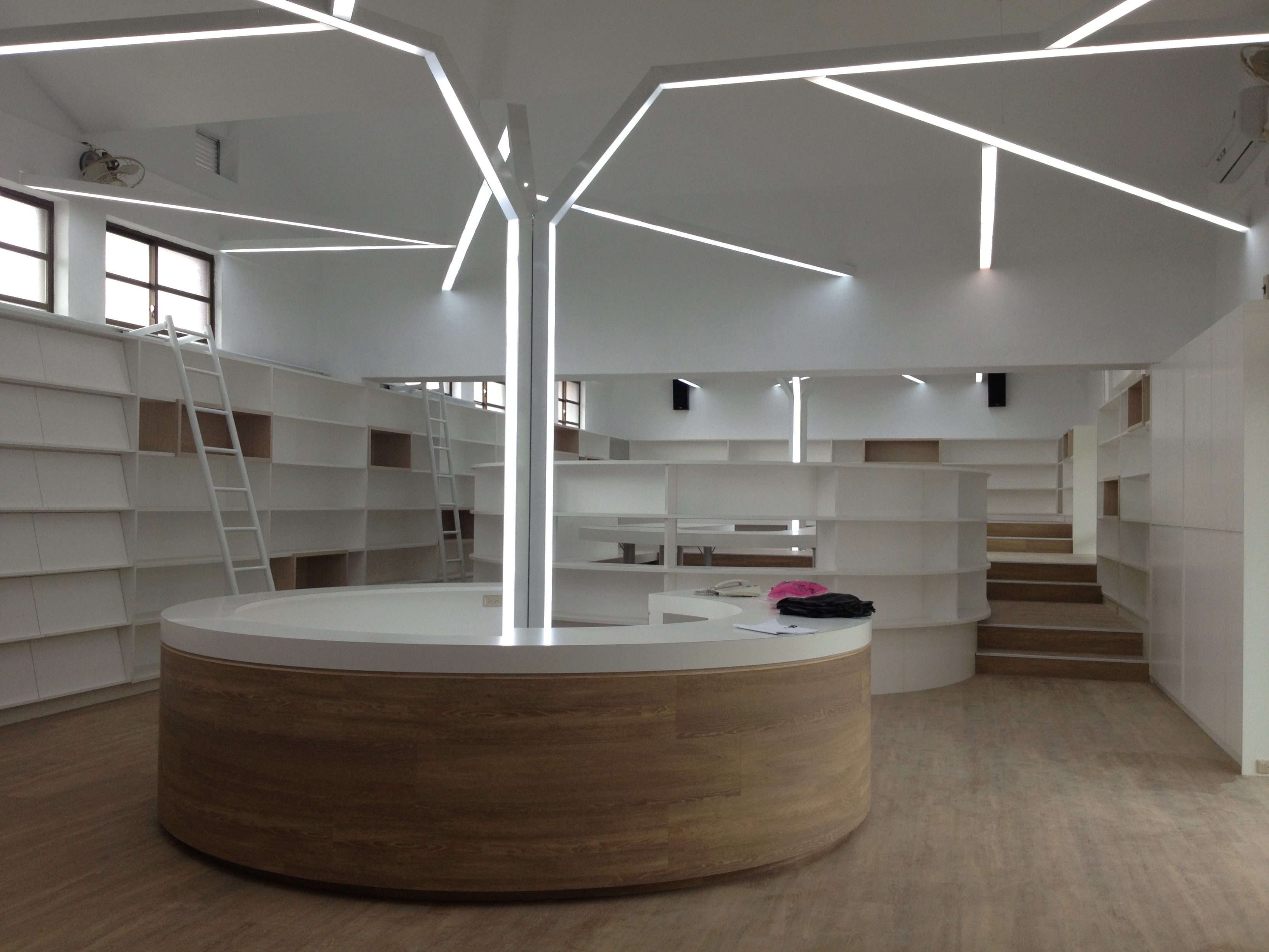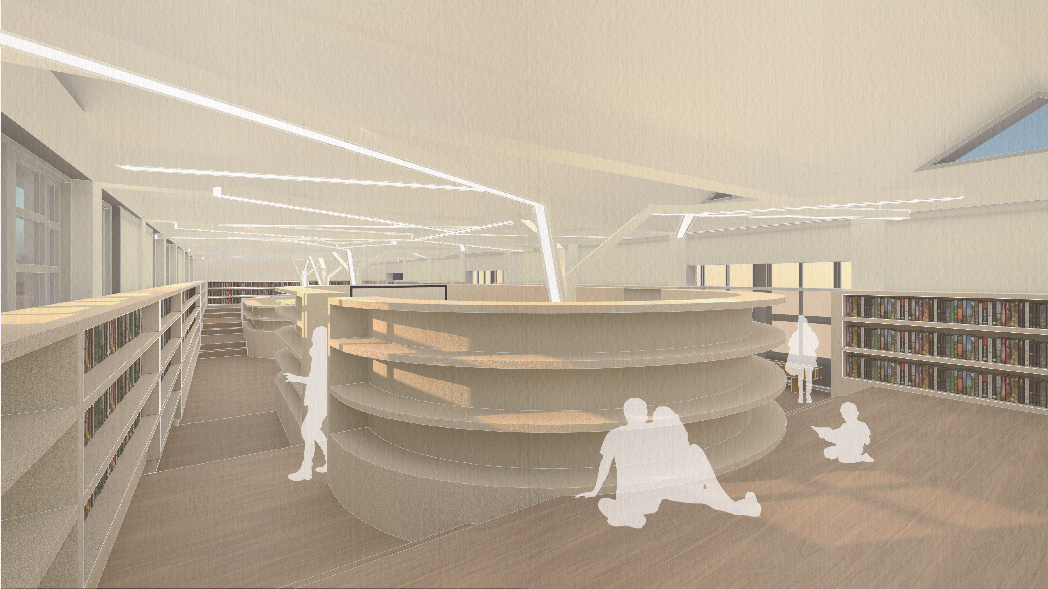 With the image of a big tree, which is the base for triggering and leading the learning of school-age youths, and the linear lighting in the form of a big tree at the center point, the interior space of the library can be accessed from the entrance in a hierarchical manner, which serves as a guide for the whole interior space.