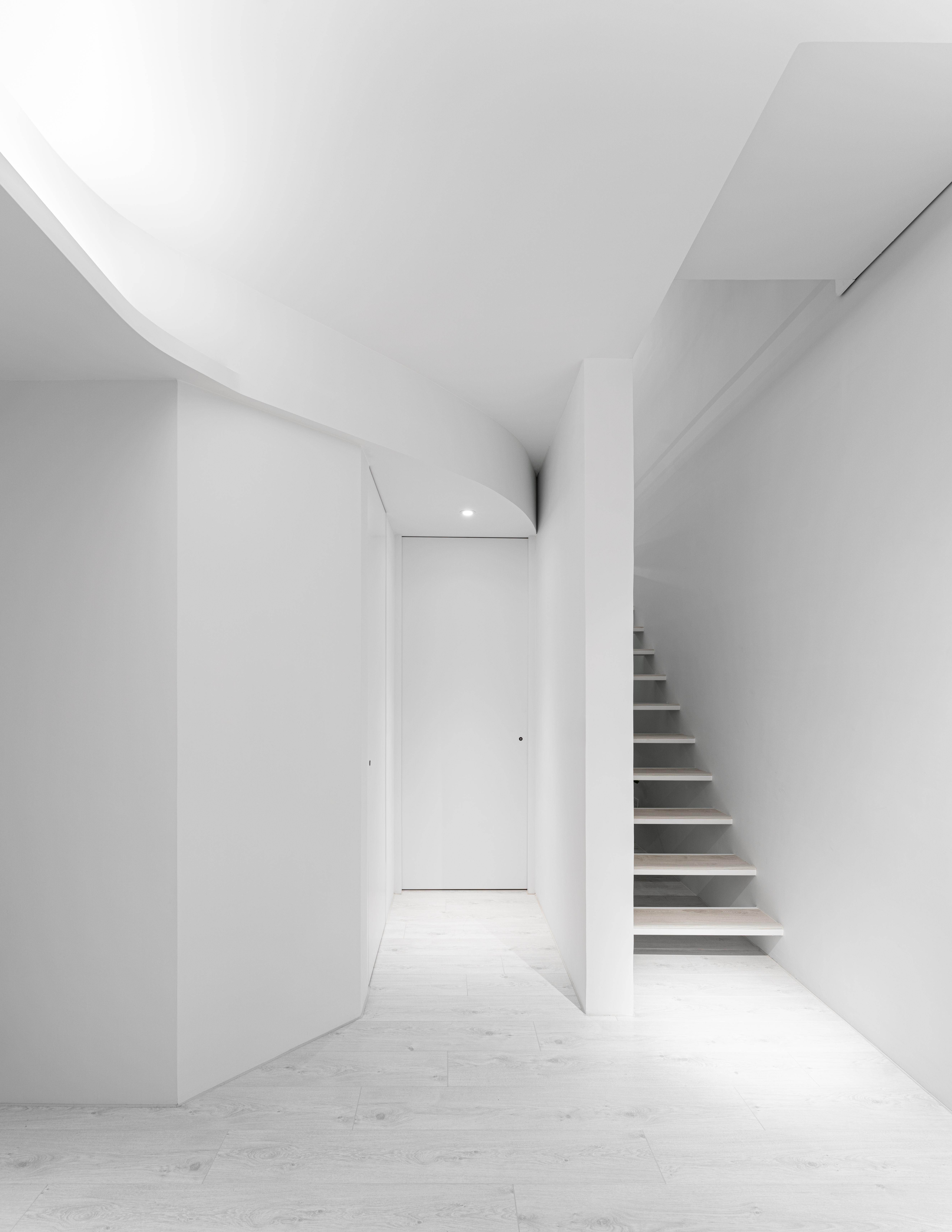 The templated structure design includes the front balcony, the rear balcony, and the space in between them, all with the same height—maybe adding a light well. The project team first revamped the design by lowering the height of the front and the rear areas, re-establish the interconnection among three parts of space, which drastically enhance the overall quality. Secondly, the staircase is redesigned for maximum natural lighting without obstructing the flow of movement. Various of thoughts were also implemented, such as the independent balcony, the interior design of the dining room, and the deliberately chosen materials, to brighten up the property and enchant it with the gentleness of feminism.