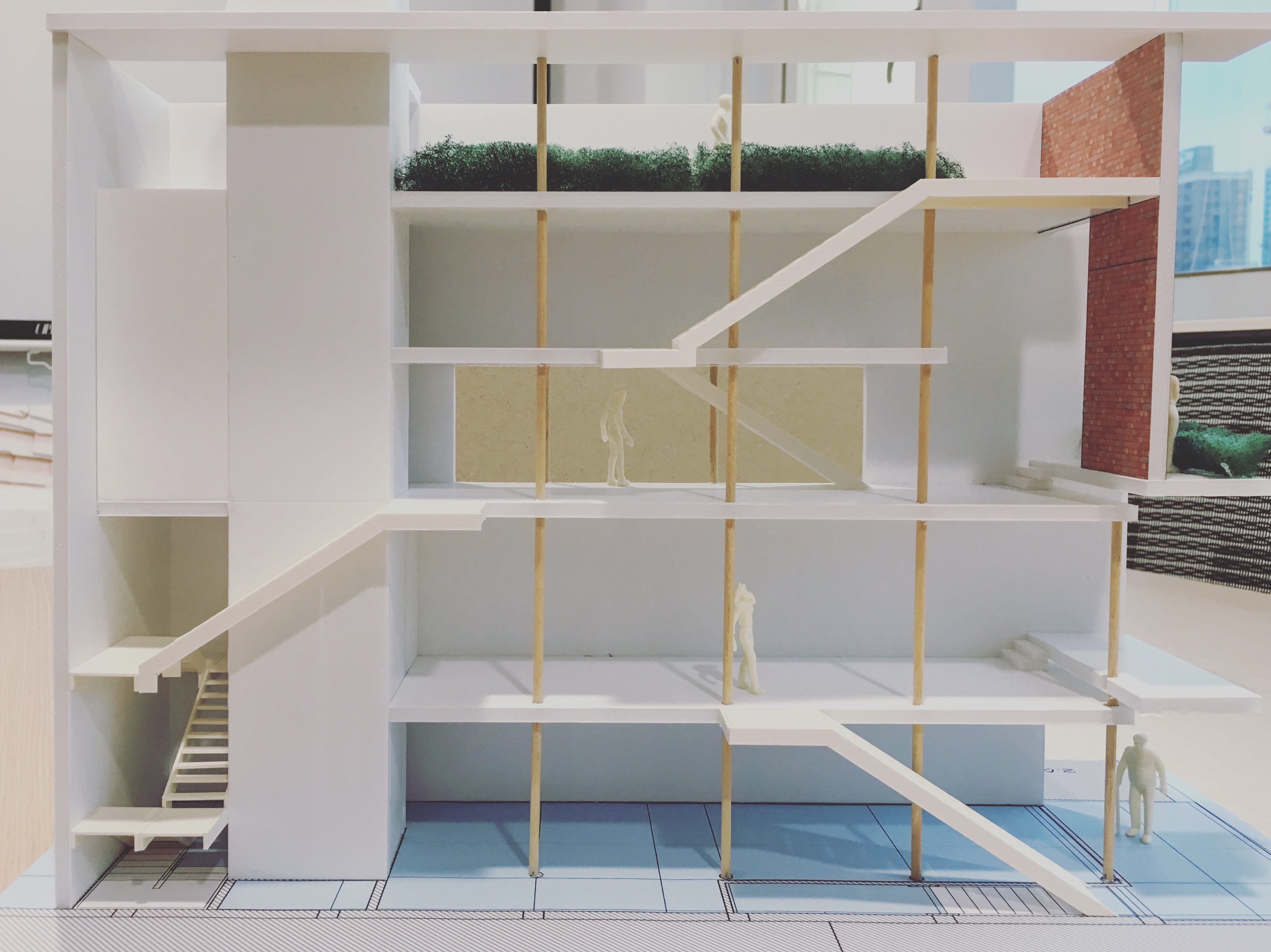 Outside the city. The traditional market is bustling with people, the sound of vendors is a familiar soundtrack to life, and the ancient red-brick houses are packed tightly together, with people constantly weaving in and out of the alleys, looking for an exit where sunshine abounds and hope follows. Behind the buildings are the old houses that have marked the years, with moss on the steps, water stains on the walls, rusted iron parts, and light pouring down from the atrium patio, as if they have found a precious respite in the city. The stores on the first floor are integrated into the market, and when you look up along the red brick wall from the veranda, you can see the original appearance of the building without any wall panels blocking the view. The floorboards recede to form a continuous void, so you can see the three-story-high red brick wall that carries your childhood memories. The second floor is open to the outside, where you can gather friends to talk and laugh, and sit on the difference between the balcony and the indoor space, providing opportunities for natural light and wind to flow in and out of the room, and follow the lighting method of the old house's patio to let the sunshine pervade this long and narrow space. The staircase is divided into two attributes, two women's domains, looking out the window to cook together and revel in it. The two-story exit, the three-story brick wall, and the aesthetics of the balcony's proportions give a visual shock, opening up the eyes to the narrow space, the bedroom PC board, the hazy texture that seems to be like inside but also like outside, combining both privacy and the feeling of each other's existence. The roof garden is a coexistence of mankind and ecology and is not subject to the constraints of the base and the street to control our lifestyle.
